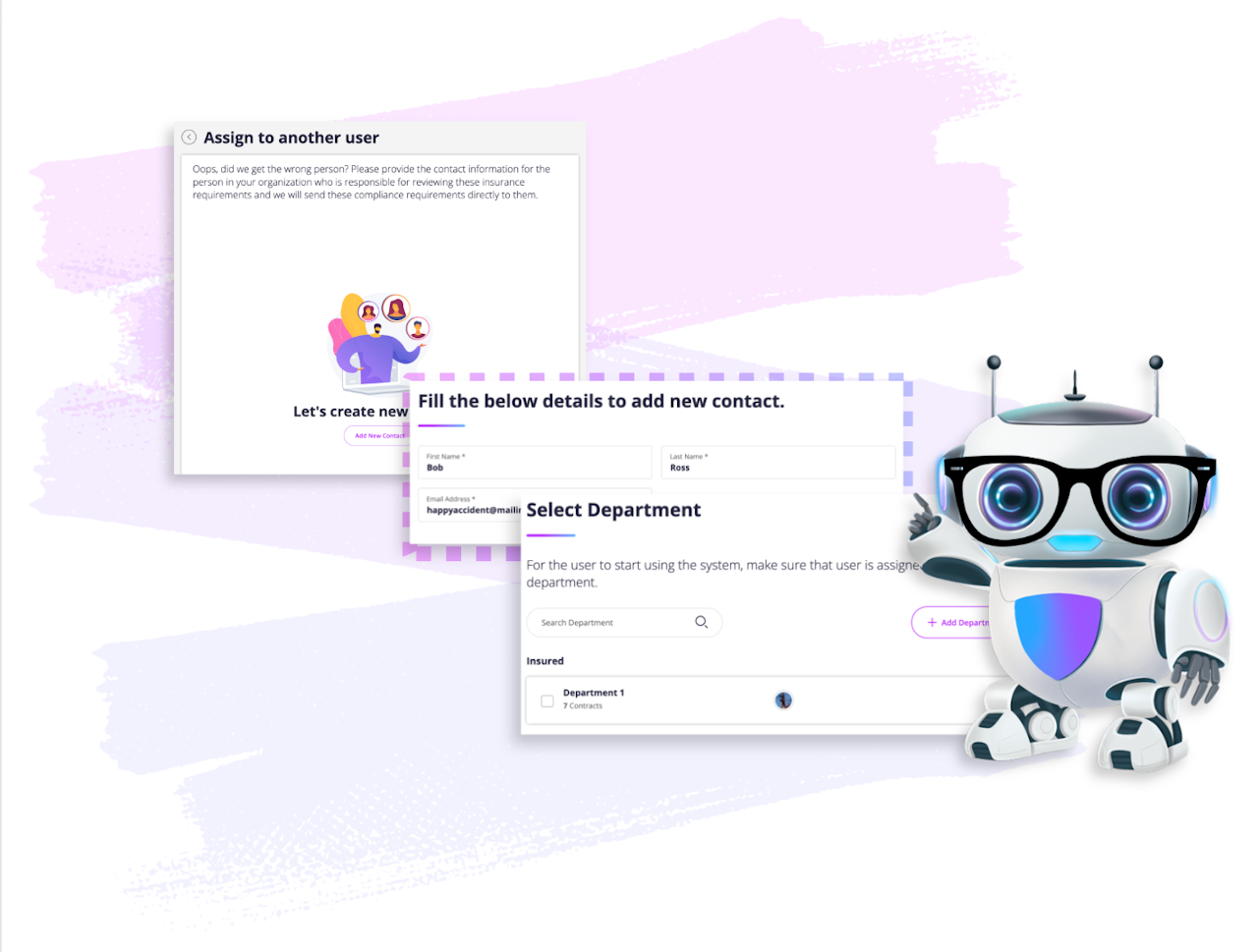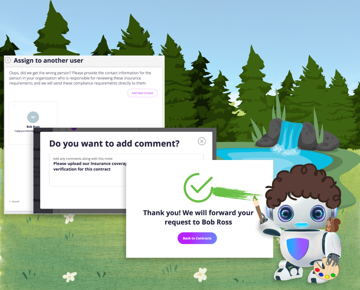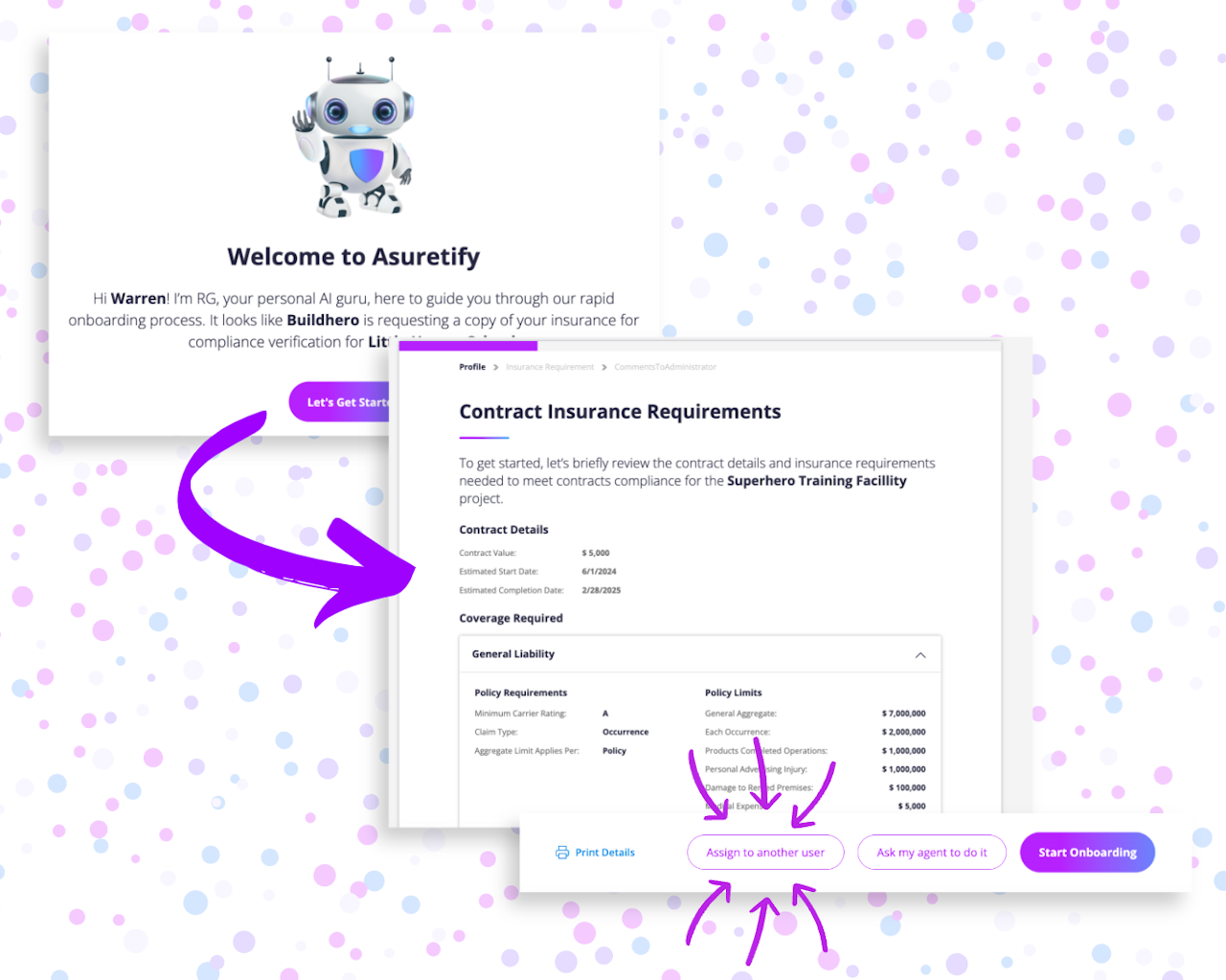 After setting up your account, review the insurance requirements for the assigned contract. From there, click "Assign to Another User"
