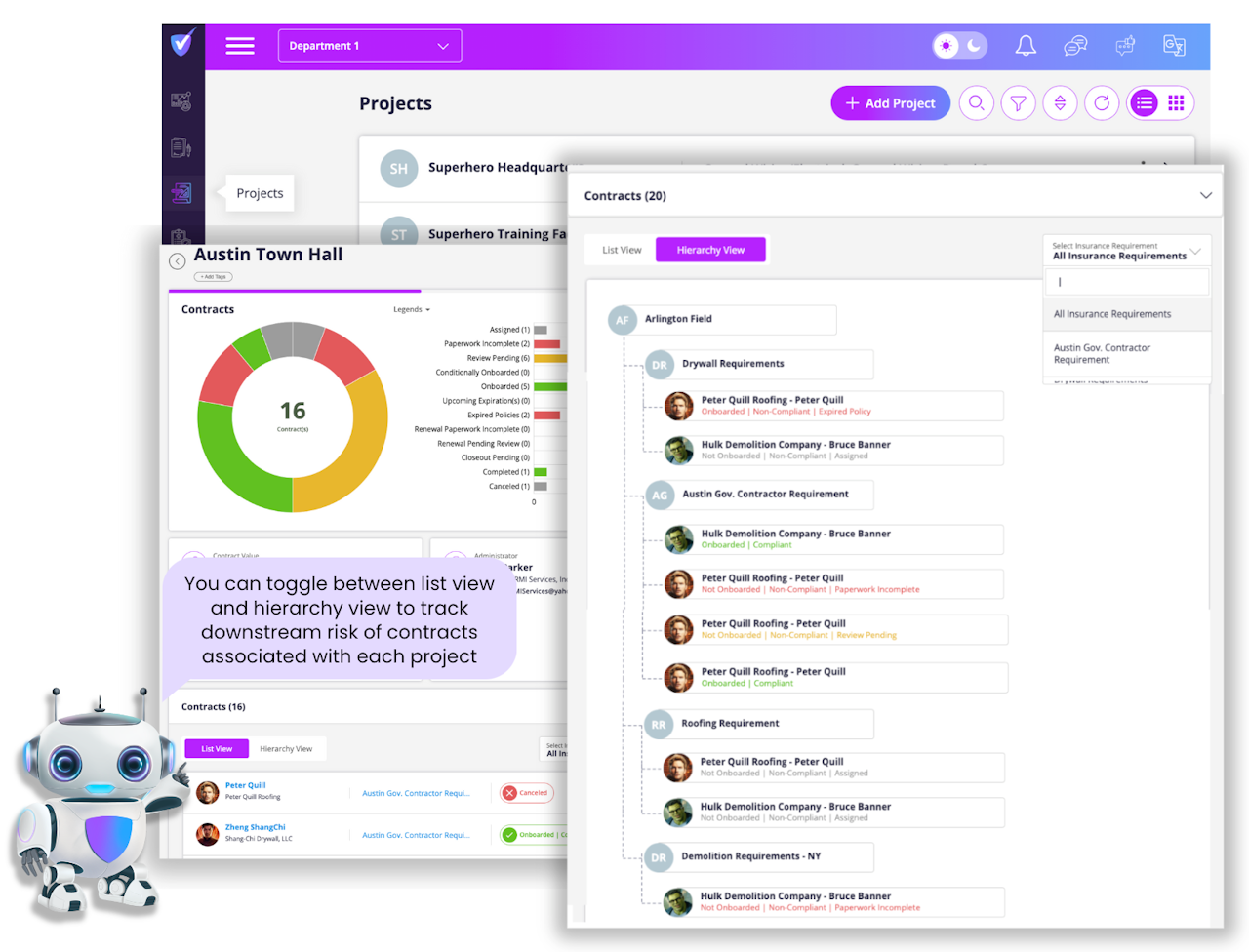 Projects are the different areas of your work that require contractors or other individuals to carry specific insurance coverages in order to provide services or work.