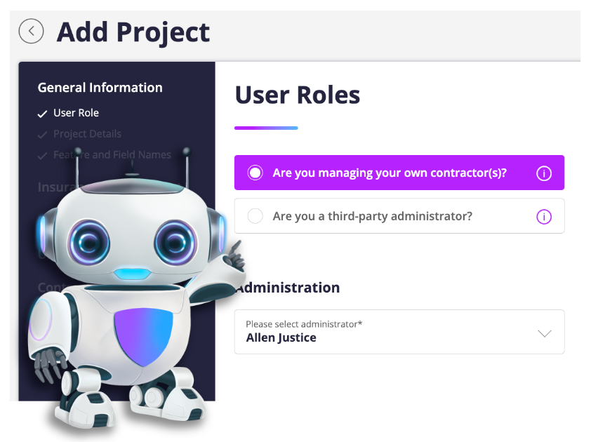 Select the name of the administrator that will be managing the contractors for this project.