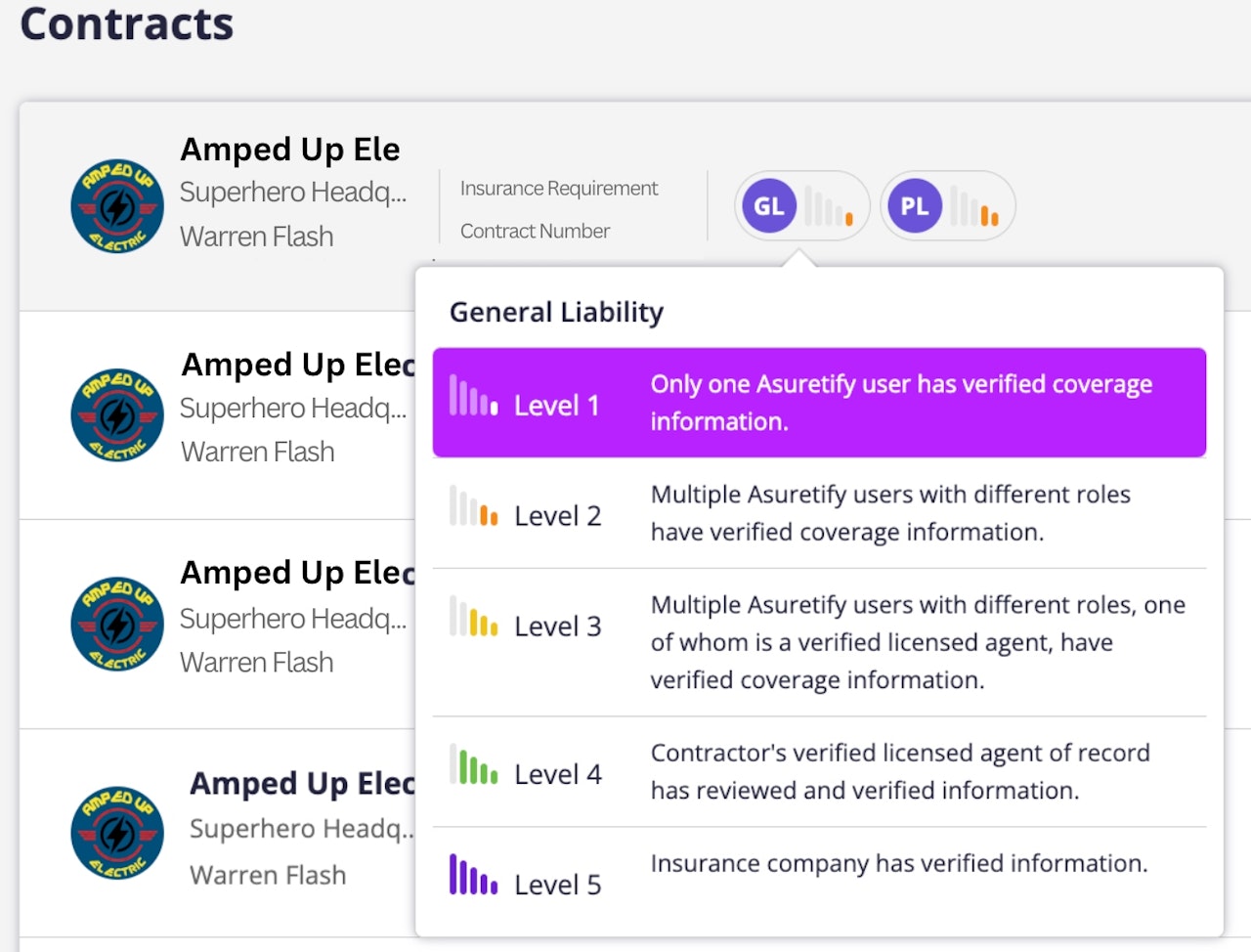 Level 2-multiple Asuretify users with different roles have verified the coverage info